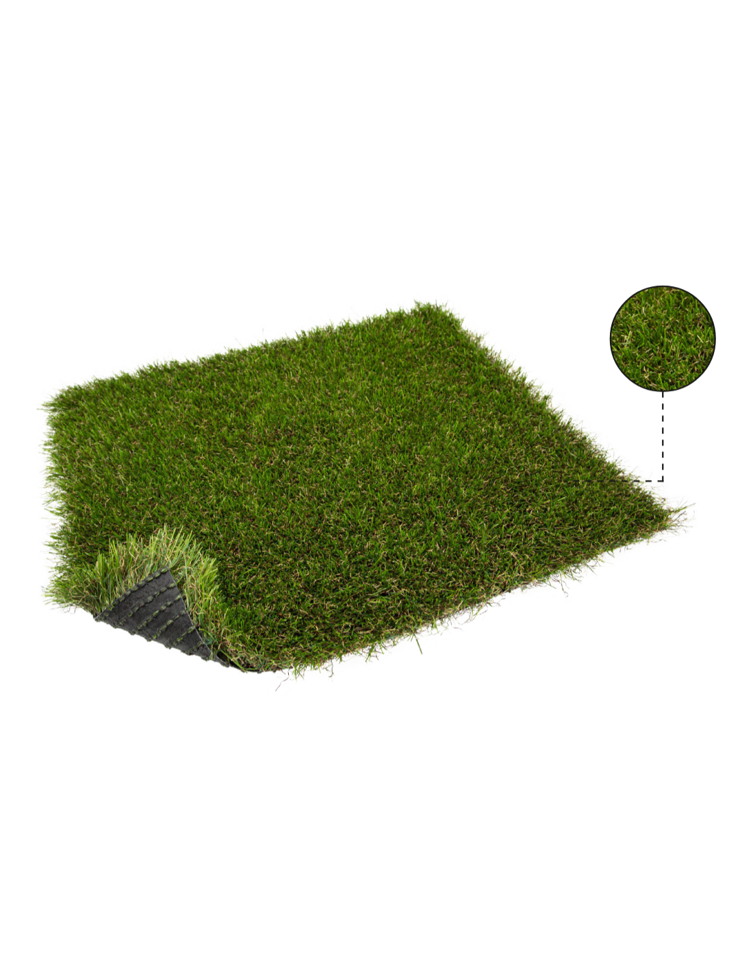 Artificial grass, 35 mm with a monofilament fiber mix (55% PE, 45% PP) and a density of 21,000 stitches/m², it guarantees durability and an elegant appearance. With its fleece reinforcement, marine backing finish, and 1000 KLY warranty, this backing provides lasting strength and stability. Aviable in complete rolls of 60 m² (2 x 30) and 120 m² (4 x 30)