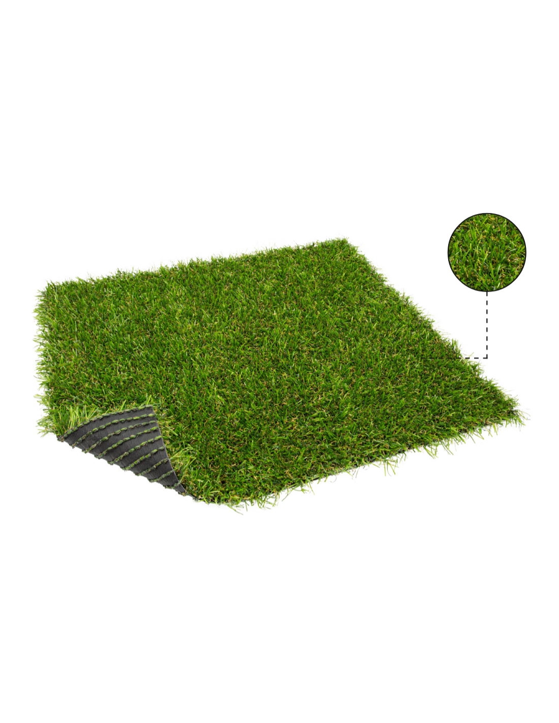 With 18,900 stitches per square meter and a total of 453,600 filaments/m2, this artificial turf guarantees dense and uniform surface, faithfully mimicking the texture and color of natural grass. Its polypropylene backing provides a solid and sturdy base, while the Marine backing finish adds an extra layer of protection against moisture, ensuring greater durability in any weather condition.