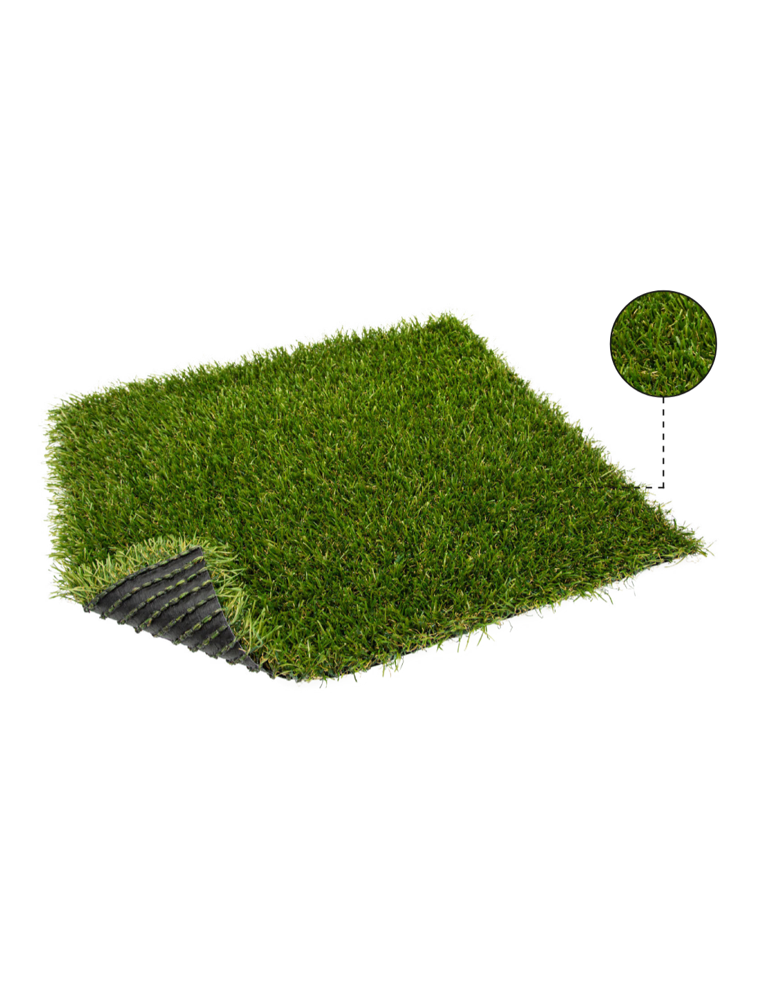 With 15.750 stitches per square meter and a total of 441.000 filaments per square meter, this artificial turf guarantees dense and uniform coverage, faithfully mimicking the texture and color of natural grass. Its polypropylene backing provides a solid and sturdy base, while the Marine backing finish adds an extra layer of protection against moisture, ensuring greater durability in any weather condition.