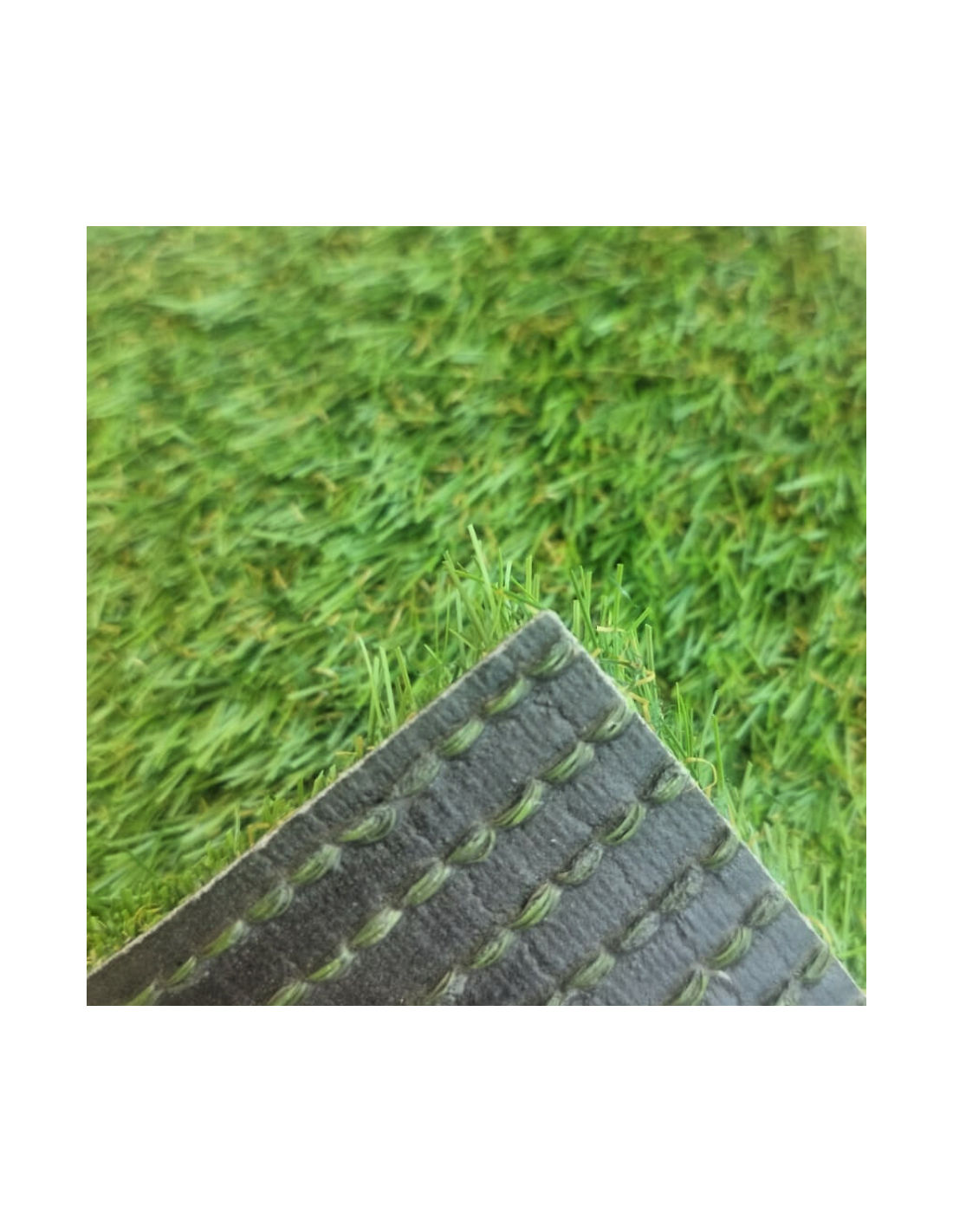 30 mm thick artificial grass, available in rolls 2 and 4 meters wide. Composed of 70% polyethylene (PE) and 30% polypropylene (PP) with a Dtex of 6,200, it ensures a perfect combination of softness and durability, adapting to various climatic conditions and uses.