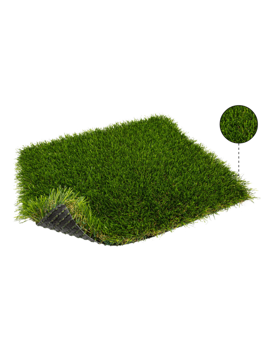 Además de la estructura de polipropileno que garantiza un drenaje eficiente, se ha añadido una capa extra de estabilidad y soporte gracias al refuerzo con fleece en el soporte primario, que es fundamental para conservar el césped en excelentes condiciones ya que posibilita que el agua se disperse por toda la superficie sin estancarse. Al evitar problemas de humedad, también se logra prolongar la vida útil del césped.