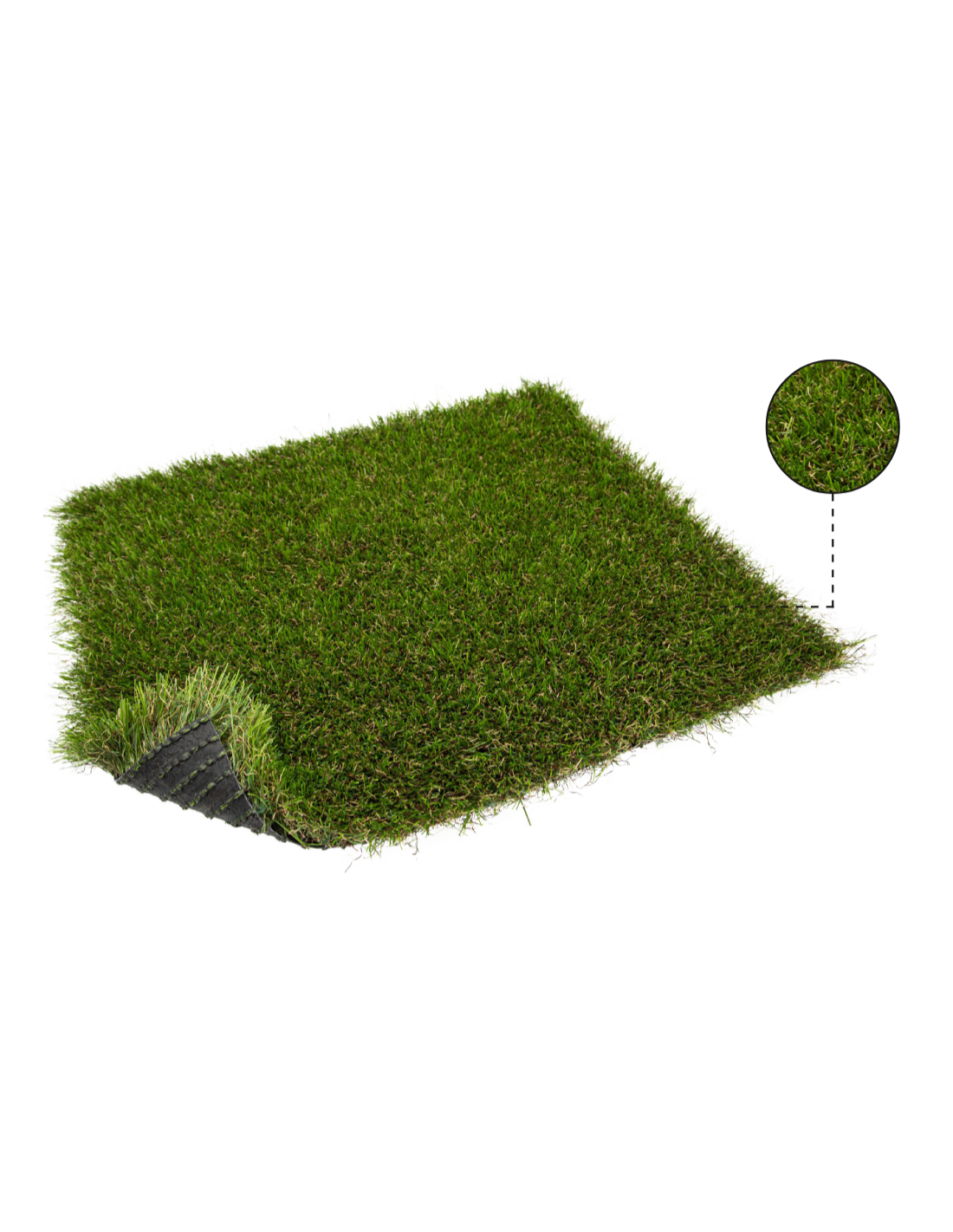 El backing, o base del césped, está fortificado con fleece para brindar estabilidad adicional y preservar la integridad estructural del césped, sobre todo en zonas de mucho tránsito. La distancia entre las filas de fibras se refiere a la galga de 3/8'' que equivale a un césped denso y uniforme.